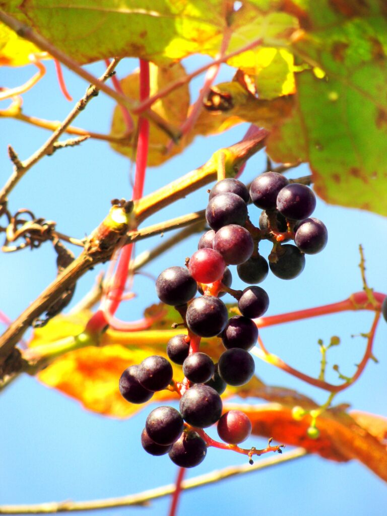 - 実(み):ブドウのようにたくさんの実を房状につけます。最初は緑色ですが、熟すとツヤのある黒紫色になります。この実の汁は、昔からインクや染料として使われていました。