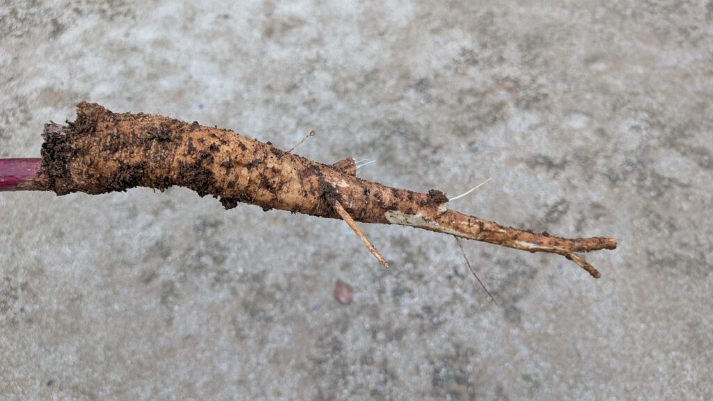 - 根(ね):太く長い。名前の通りごぼうのような見た目です。