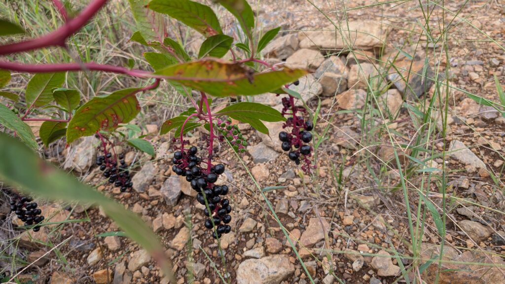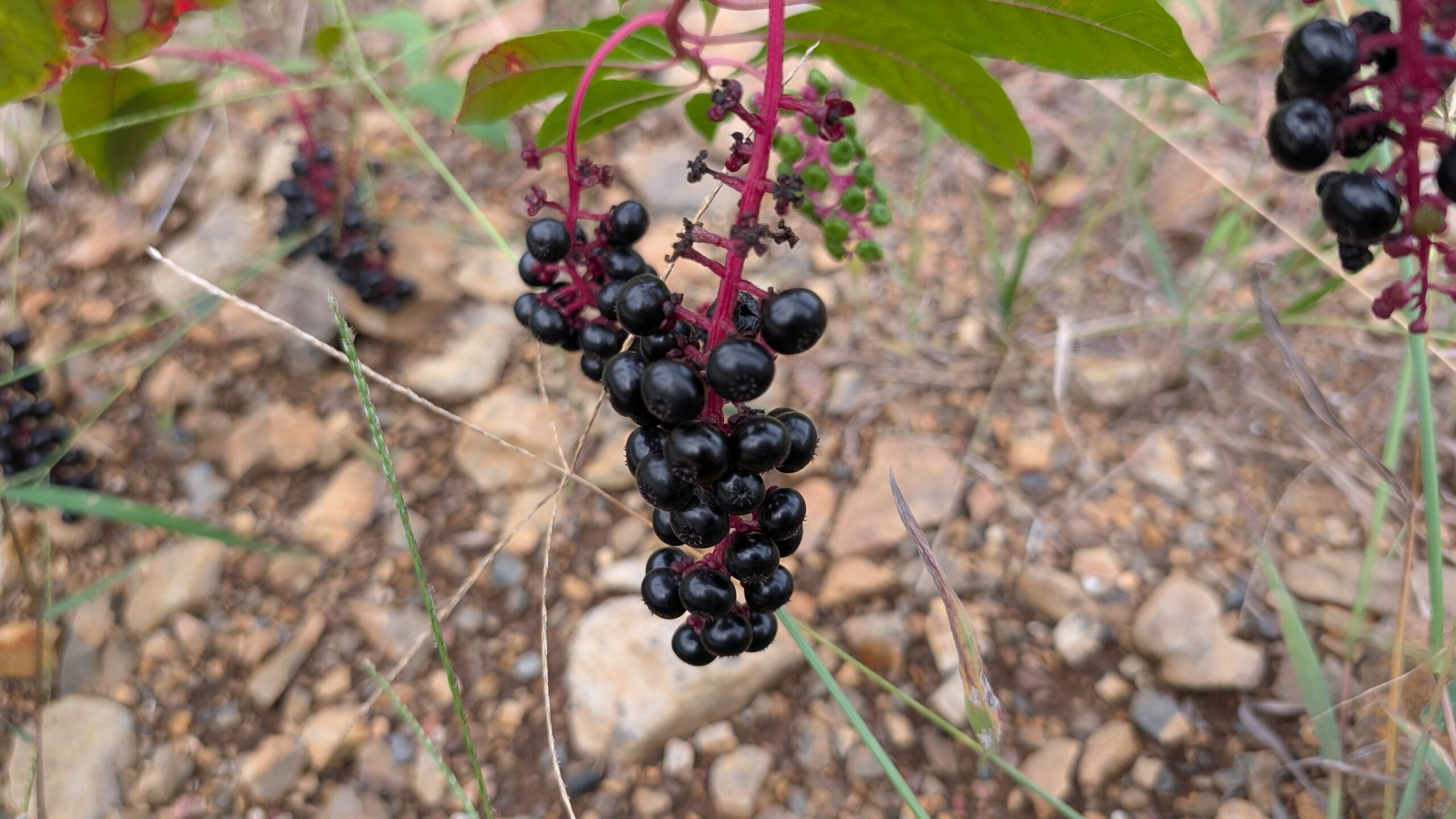 ヨウシュヤマゴボウの実は、食べられるブドウやブルーベリーにそっくりです。