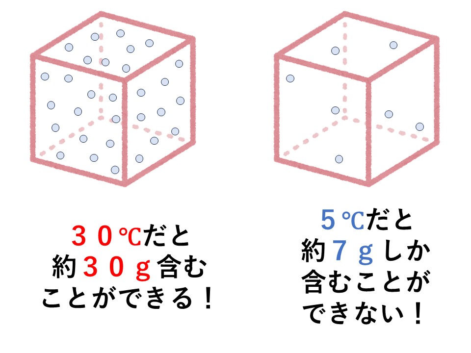 空気には「温度が高いほど水蒸気をたくさん含むことができる」という特徴があります。
