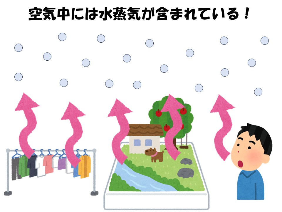 空気中には目に見えない水分(水蒸気)が含まれています。