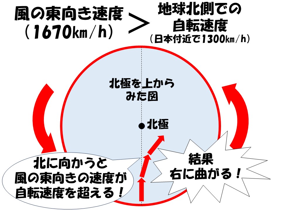 発生した風は、生まれながらにして時速1670㎞の東向きの速度を持っていることになります。