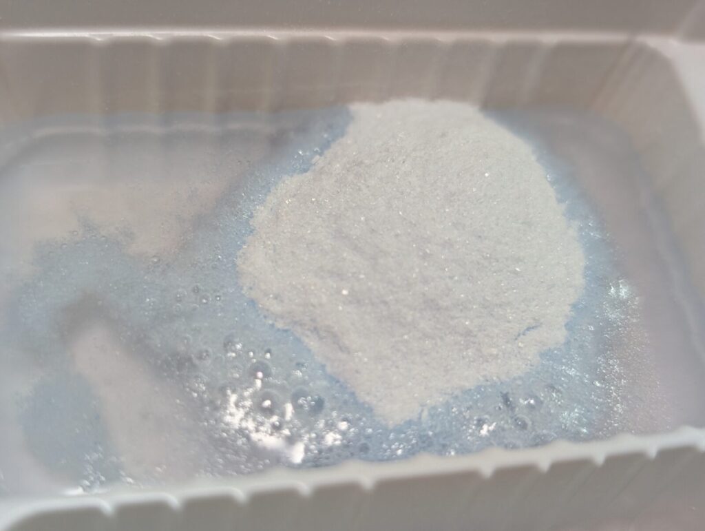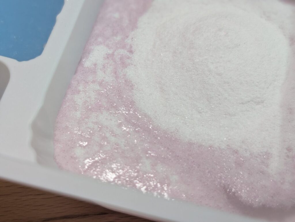 ちなみにこの泡の正体はおそらく重曹と酸味料の中和反応による二酸化炭素です。