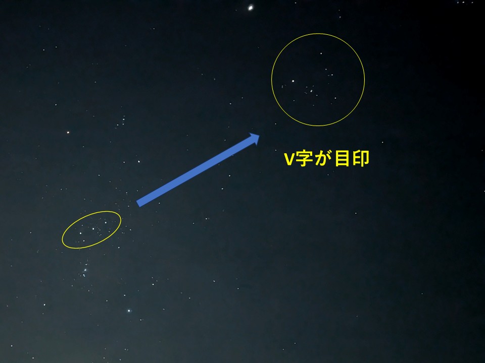 1つ目はV時の星の並びが特徴的な、「ヒアデス星団」という星の集まり。