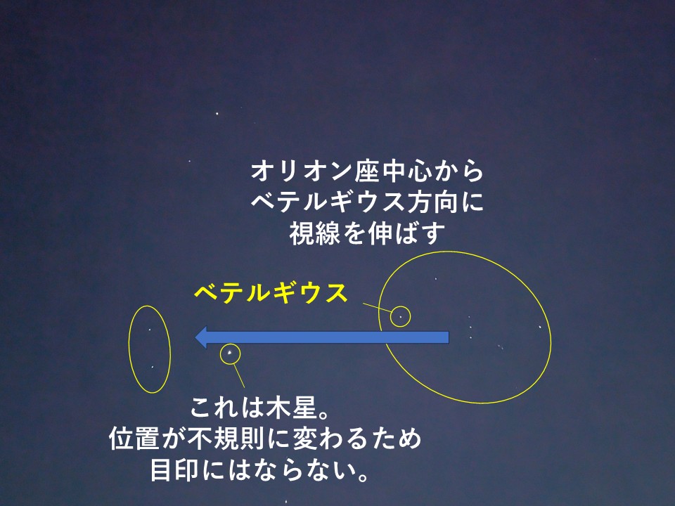 冬のダイヤモンドは非常に広い範囲に広がっておりますので、視野を広くしてみるのがポイントです。