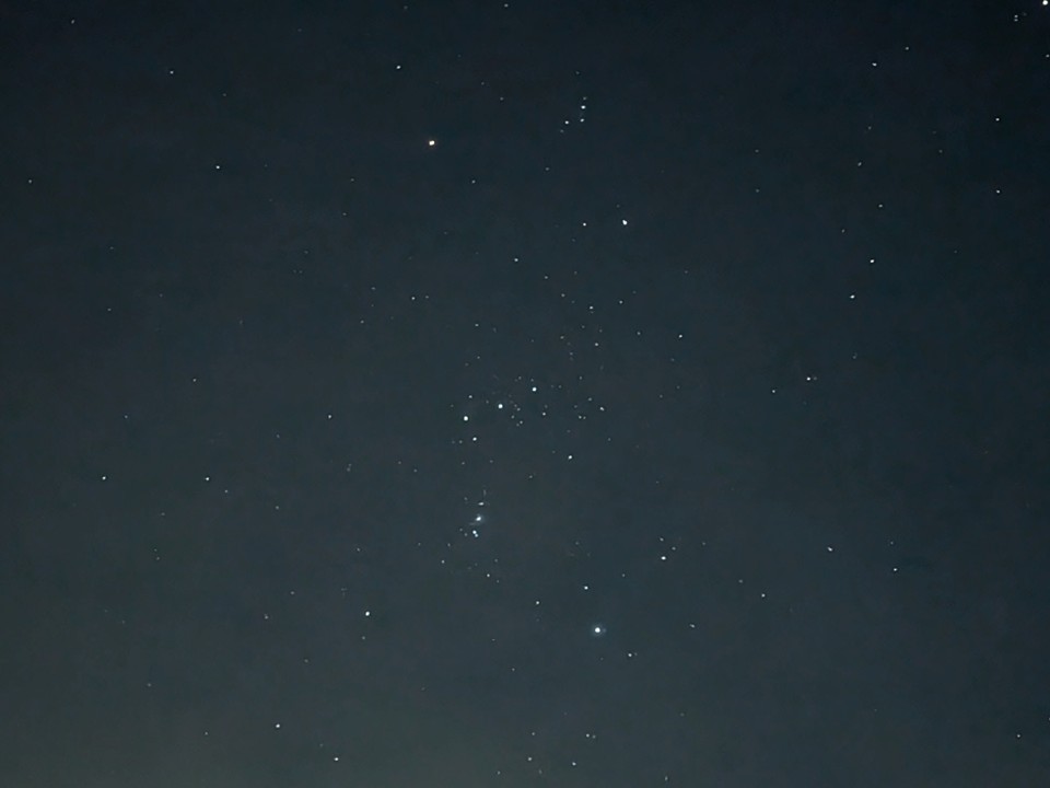 もう一つはヒアデス星団のさらに上、牛の肩のあたりで青白く光る星の集まり「プレアデス星団」です。