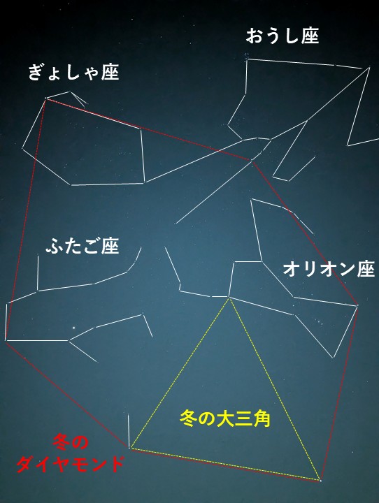 それぞれの代表する星を結ぶと「冬のダイヤモンド」の完成です。