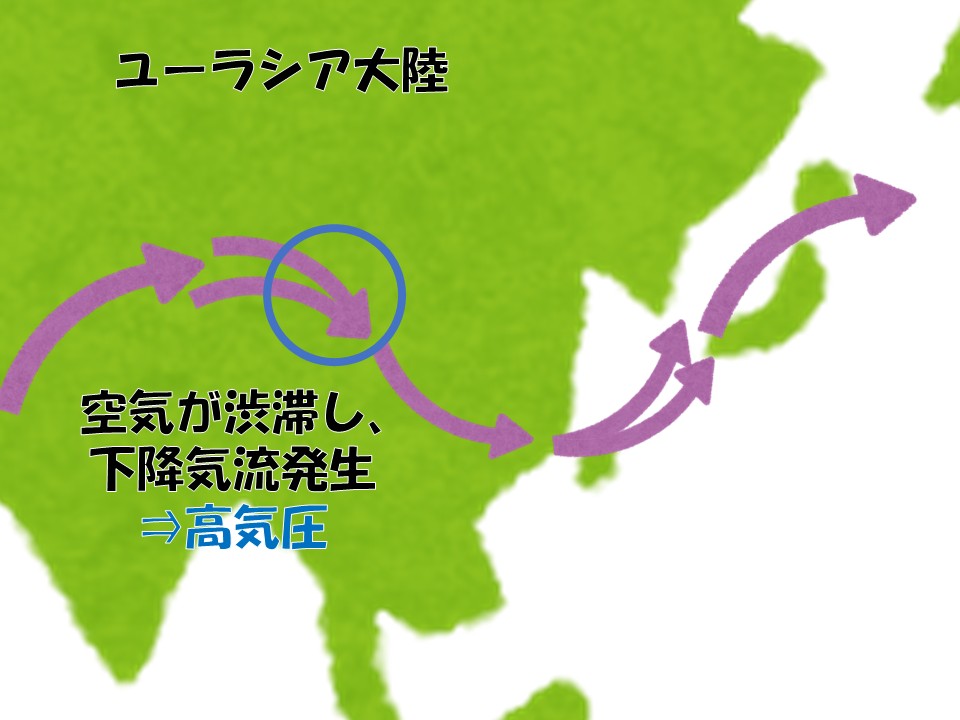 渋滞して行き場を失った空気は地上に向かって下降し、高気圧となるのです。