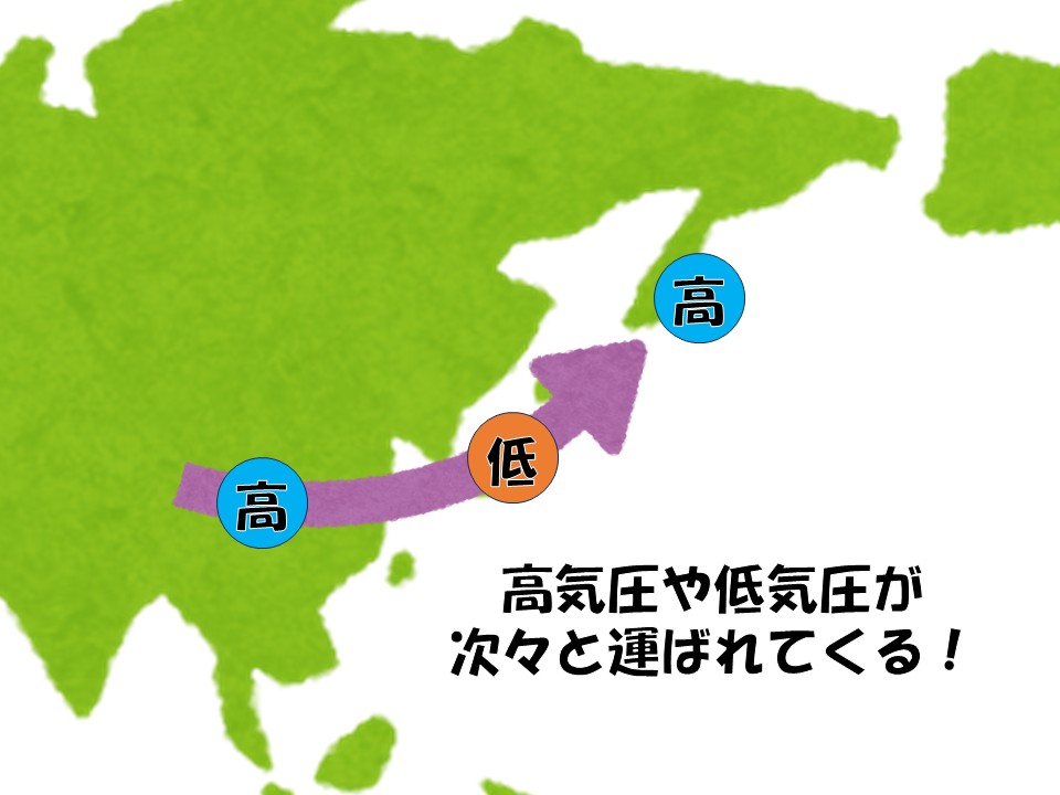 よって、春や秋は高気圧や低気圧が日本上空を通過しやすくなるという現象が起こるのです。